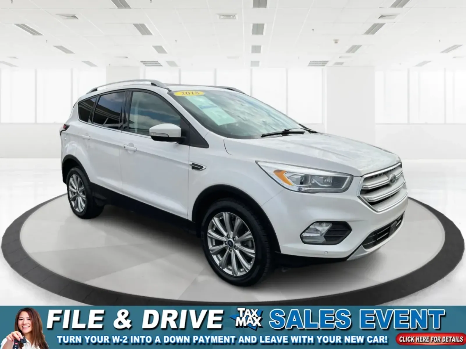 $500 down – nothing more. 54 monthly payments of $27.82 per $1000 financed. 19.9% Annual Percentage Rate. Select vehicles only. With approved credit. 2018 Ford Escape Titanium